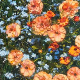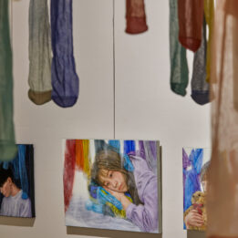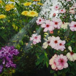 光を宿す花をモチーフに、記憶や視点の重なりを描いています。花は人の心の奥に眠る記憶や感情に静かに触れる存在です。