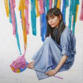 石膏地にアクリル・テンペラ・油彩